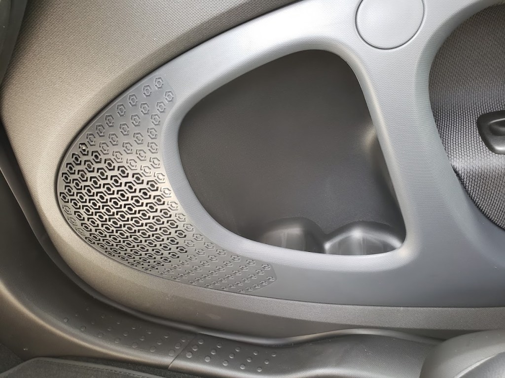 The Smart Fortwo features hexagon tessellations in its interior design (air vents, speaker grilles, panel geometry).