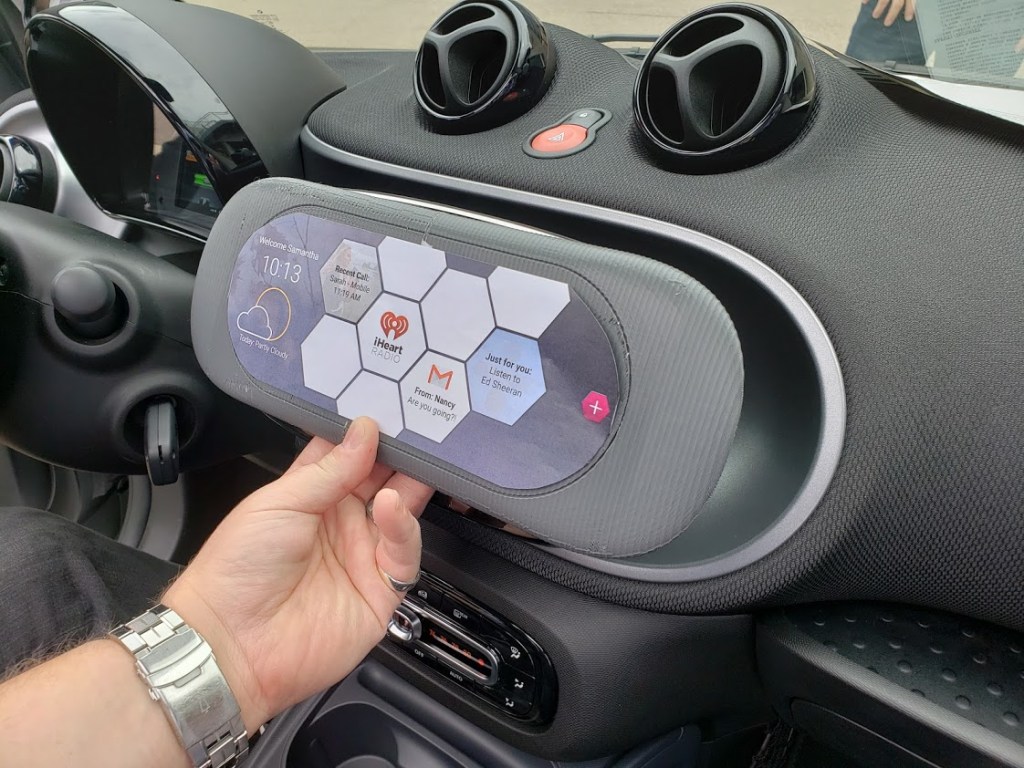 This allowed us to test screen ergonomics and integration with the Smart Fortwo cabin frame.